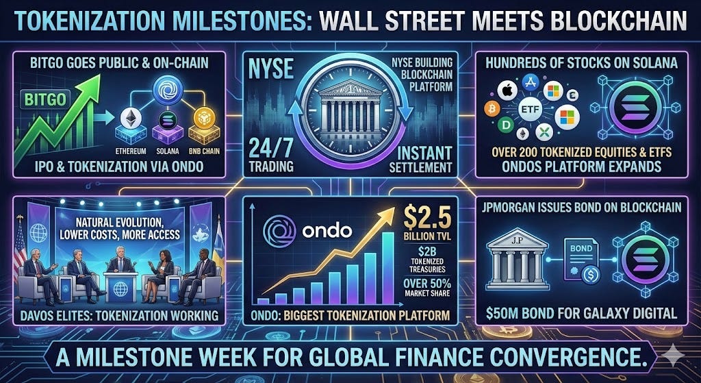 This week saw a flurry of breakthroughs in asset tokenization. From the New York Stock Exchange prepping 24/7 trading of on-chain stocks to hundreds of equities launching on Solana, even a crypto company’s stock got tokenized hours after its IPO. The line between traditional finance and on-chain markets is blurring fast.