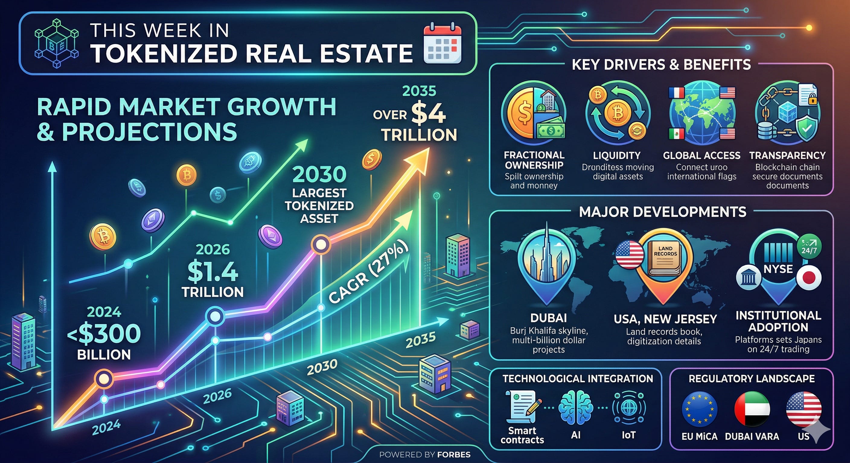 • Dubai: Launched a multi-billion dollar tokenization project, aiming to transform property ownership with Phase II enabling resale activities.